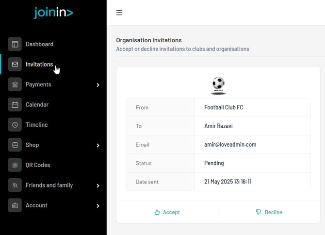 - Go to the Invitations menu to and choose to accept or decline