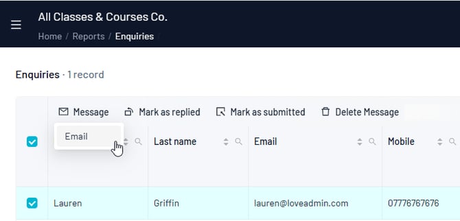 You can also choose to receive email notifications when a submission is made. All enquiries can be viewed and responded to within the LoveAdmin enquiries report, allowing you to manage the entire enquiry process in one place.
