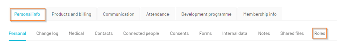 - Navigate to the 'roles' tab, located under the 'Personal Info' section of the contact record