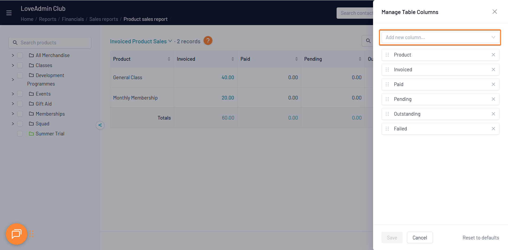 Note: Changes made to column options are saved against the user logged in, not the organisation. This means that any adjustments you make to the column data will only be visible to you.