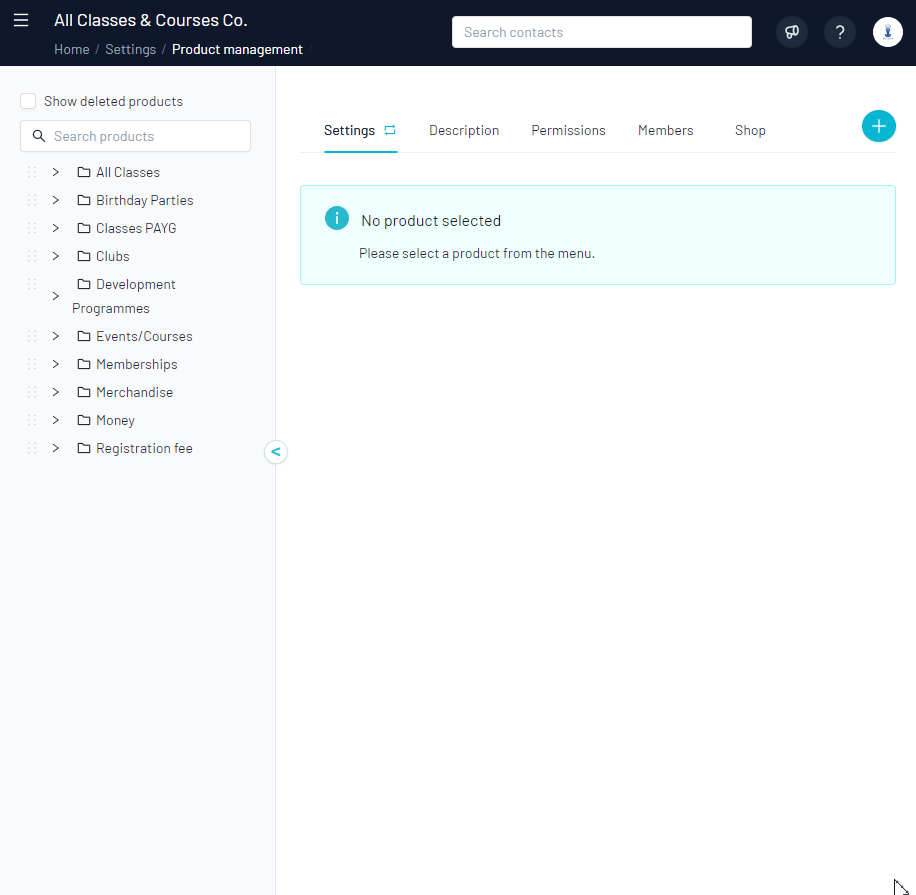 - Navigate to Settings > Products