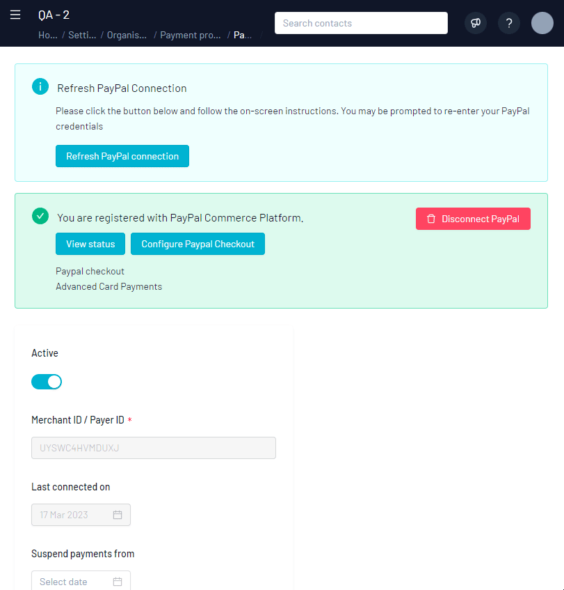 - You have now successfully refreshed your connection with PayPal!