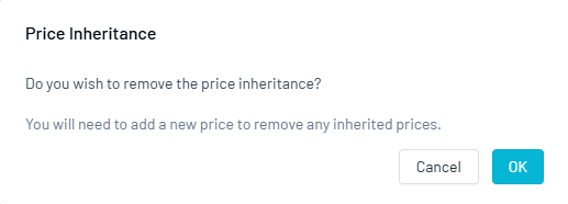 To override inherited Pricing settings, click into the blurred-out price as seen above to bring up the following pop-up: