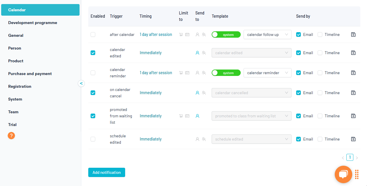 - Select the 'Timeline' checkbox under the 'Send by' column