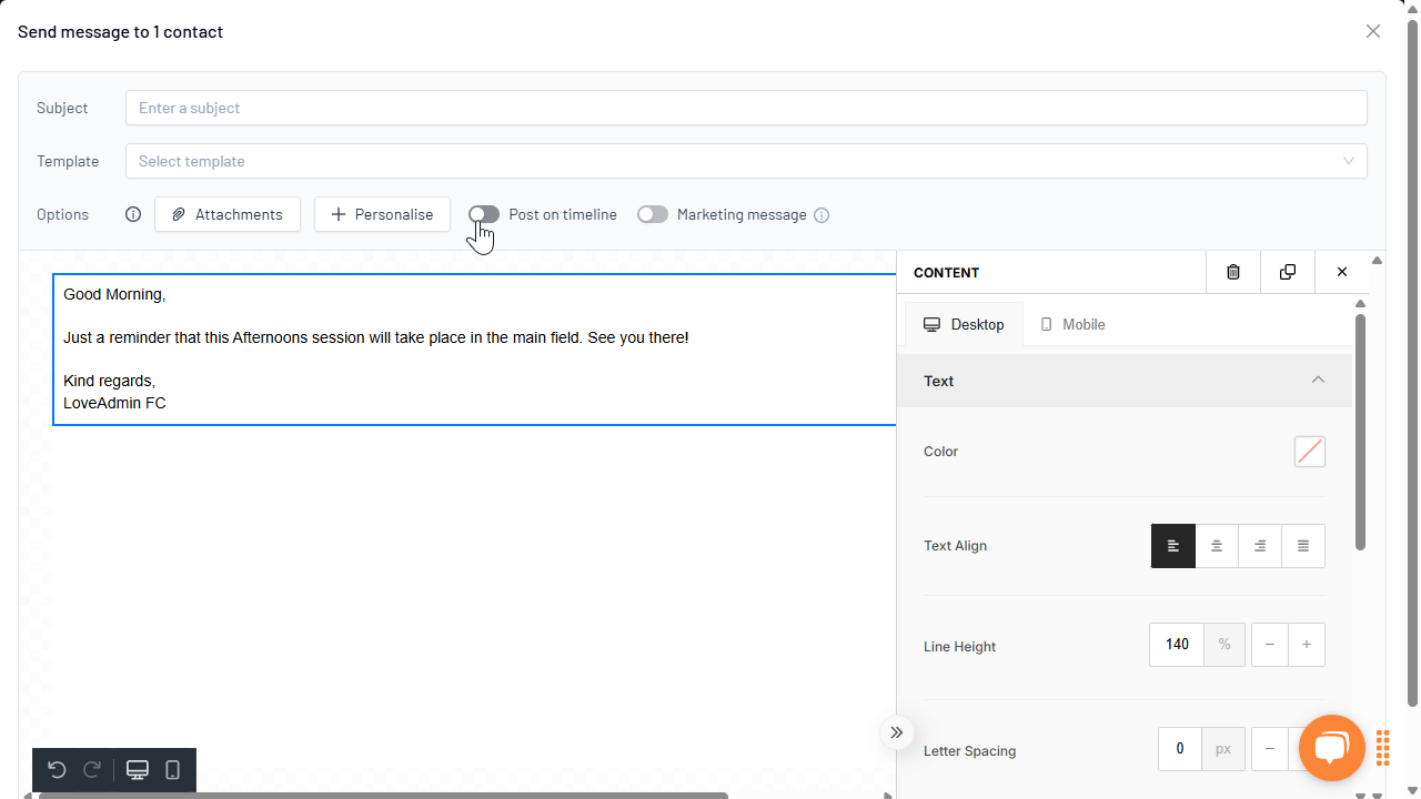 Sending messages via the JoinIn timeline helps ensure that important information remains centralised and accessible as emails can often be missed in busy inboxes.