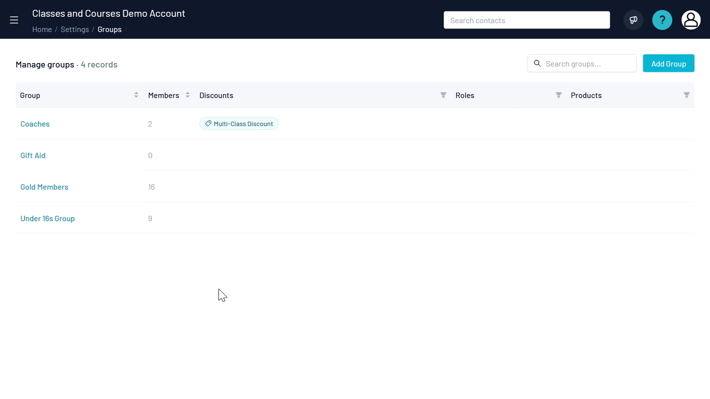 - Creating a discount and assigning it to a group will mean that members in that group can be given a discount that might otherwise not apply to them. For example, having a flat 10% discount applied to a group for coaches.